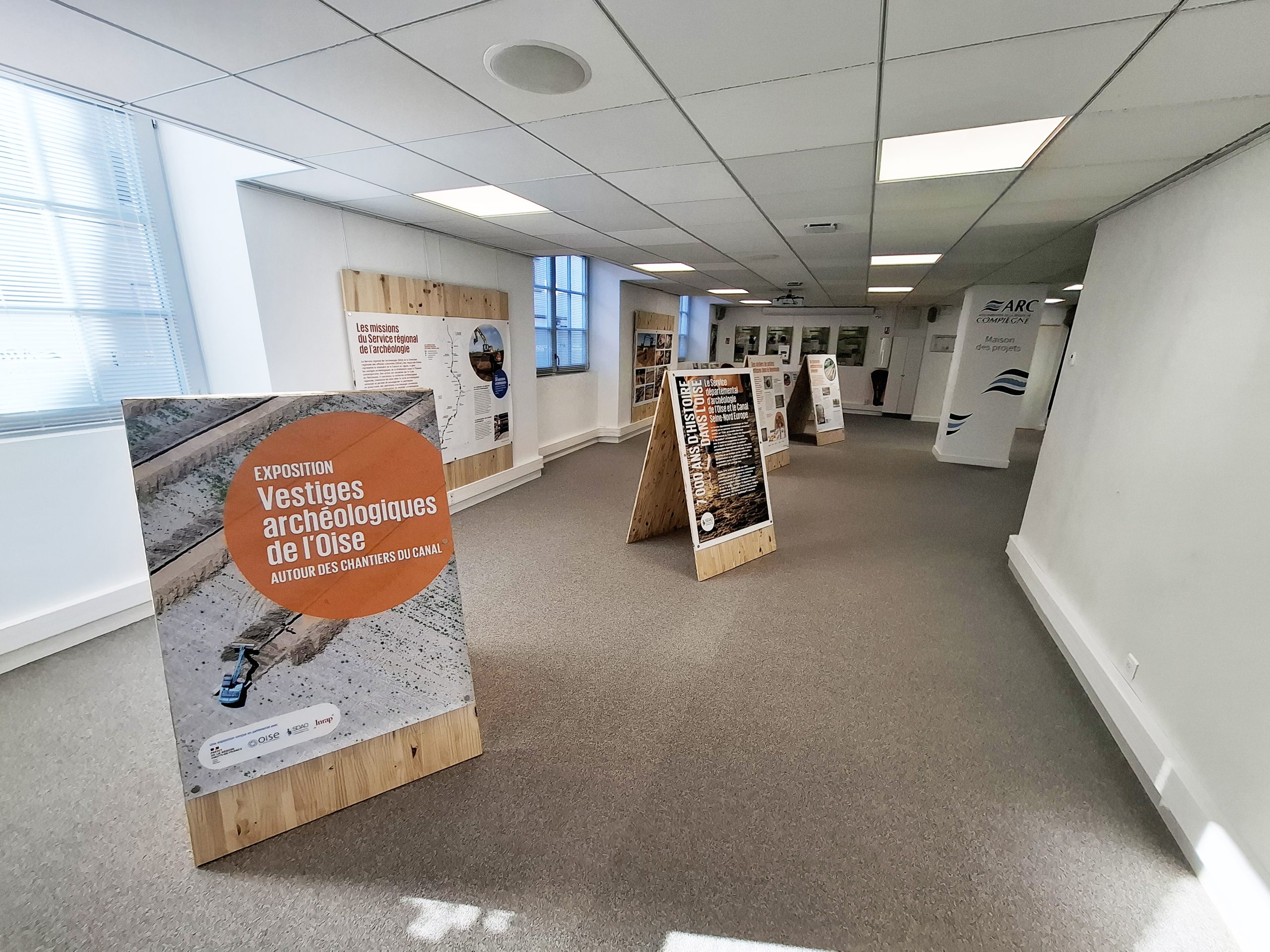Entre le 6 novembre 2024 et le 4 janvier 2025, l’exposition « D’une rive à l’autre, de nouveaux ponts dans le Compiégnois » a retracé la construction des premiers ouvrages du Canal Seine-Nord Europe dans le Compiégnois. Elle présentait également un film rétrospectif des opérations des ces deux dernières années.